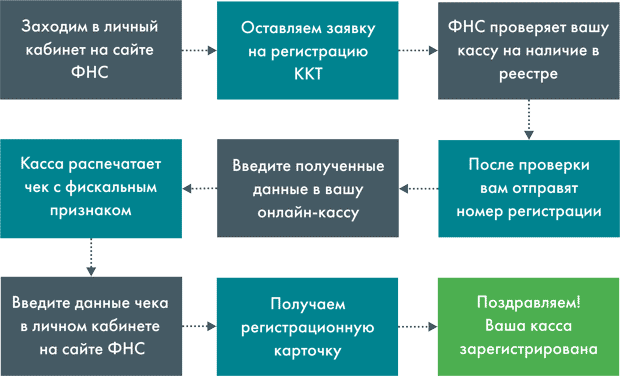 Услуга по регистрации кассового аппарата в налоговой инспекции проходит по следующему алгоритму: